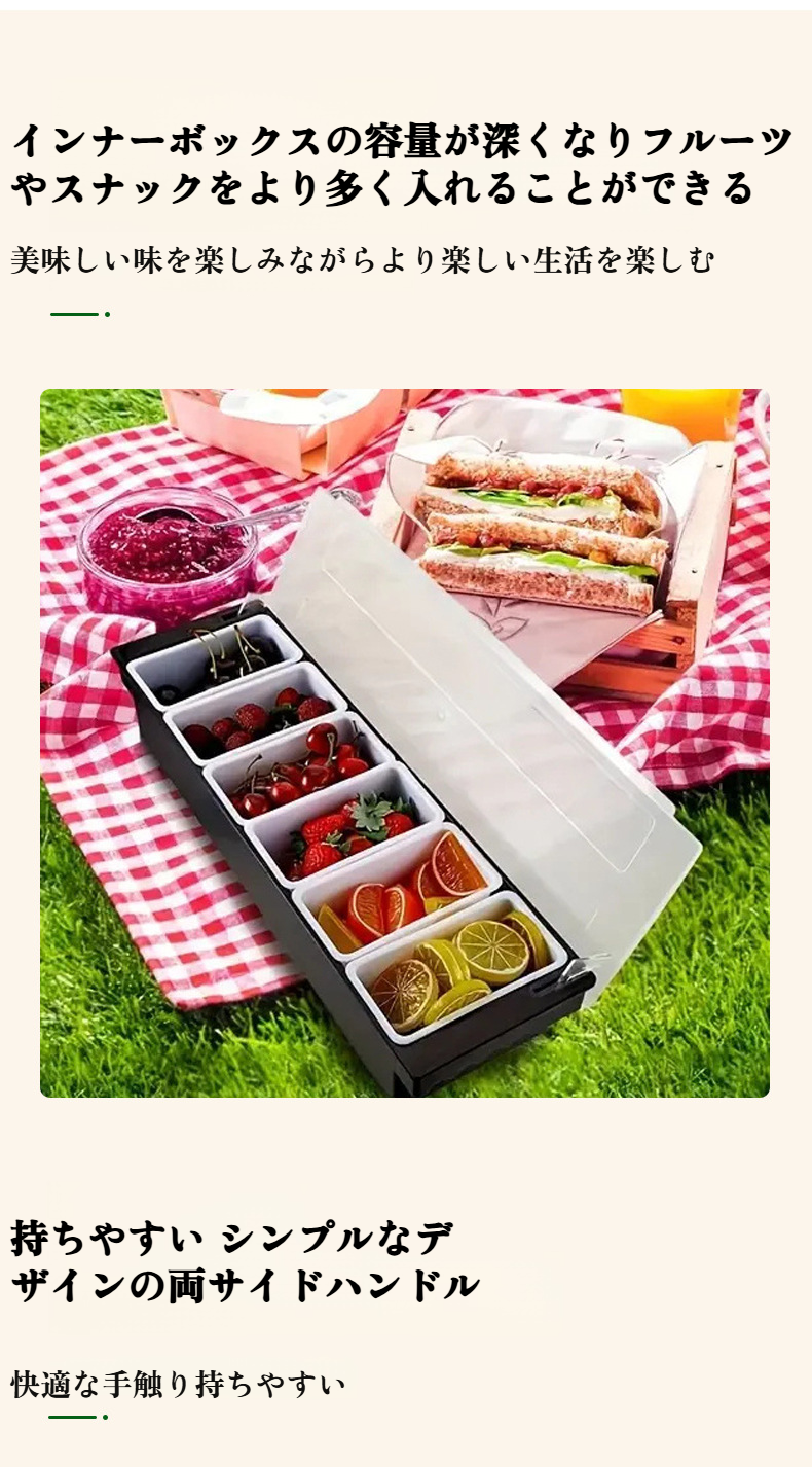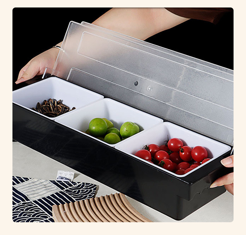 仕切り付きフルーツボックス、鮮度保持ボックス、バー調味料ボックス、ミルクティーショップ、蓋付きプラスチック製6仕切り食材ボックス
